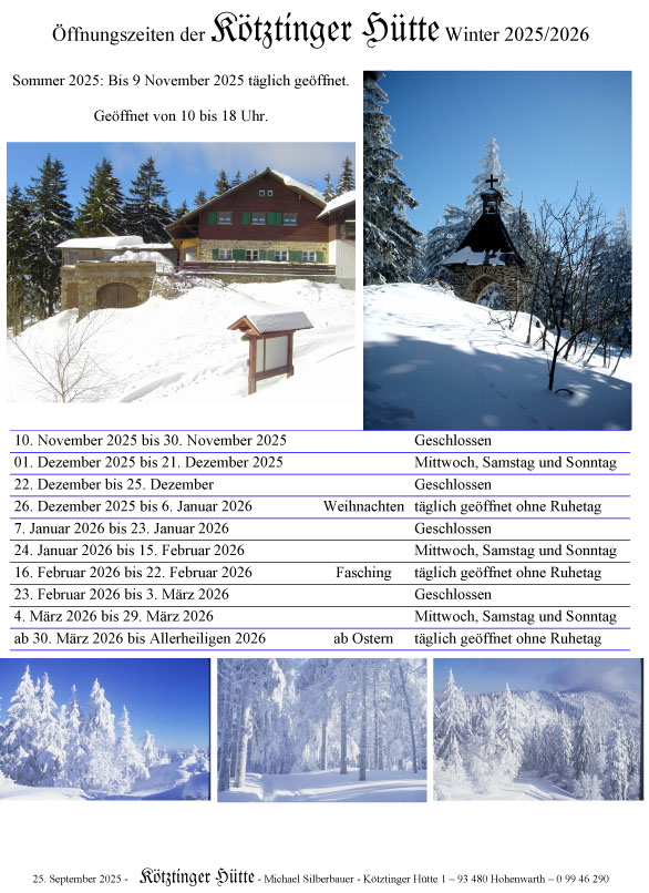 Öffnungszeiten im Winter - Kötztinger Hütte